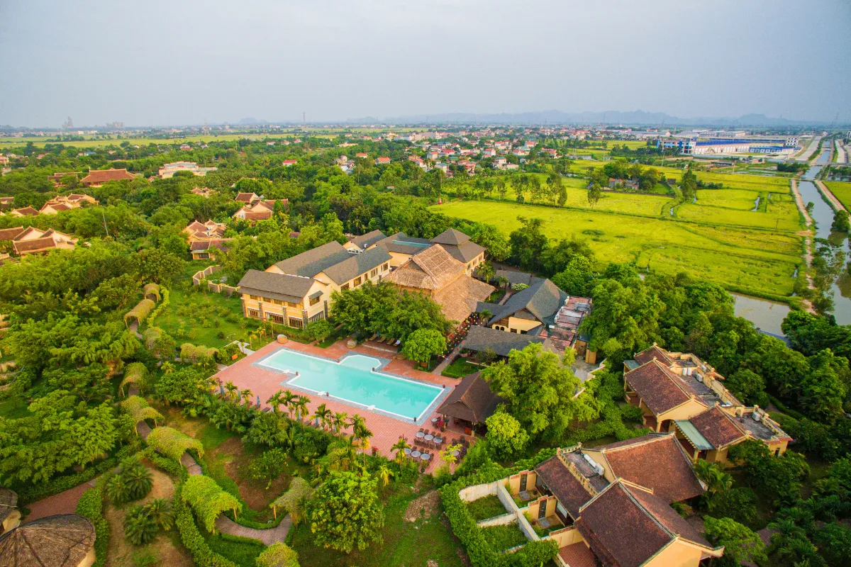 Emeralda Ninh Bình là khu nghỉ dưỡng đẳng cấp 5 sao nằm trong khu bảo tồn thiên nhiên Vân Long (Ninh Bình), được mệnh danh là “làng cổ Bắc Bộ” thu nhỏ. Bên cạnh không gian làng quê Việt xưa với mái ngói mũi hài, nhà ba gian, sân đình,… resort còn sở hữu hệ thống bể bơi, spa cao cấp. Nơi đây rất gần danh thắng Bái Đính, Tràng An, Tam Cốc,… nên được nhiều doanh nghiệp ưu ái lựa chọn làm địa điểm tổ chức Team Building.