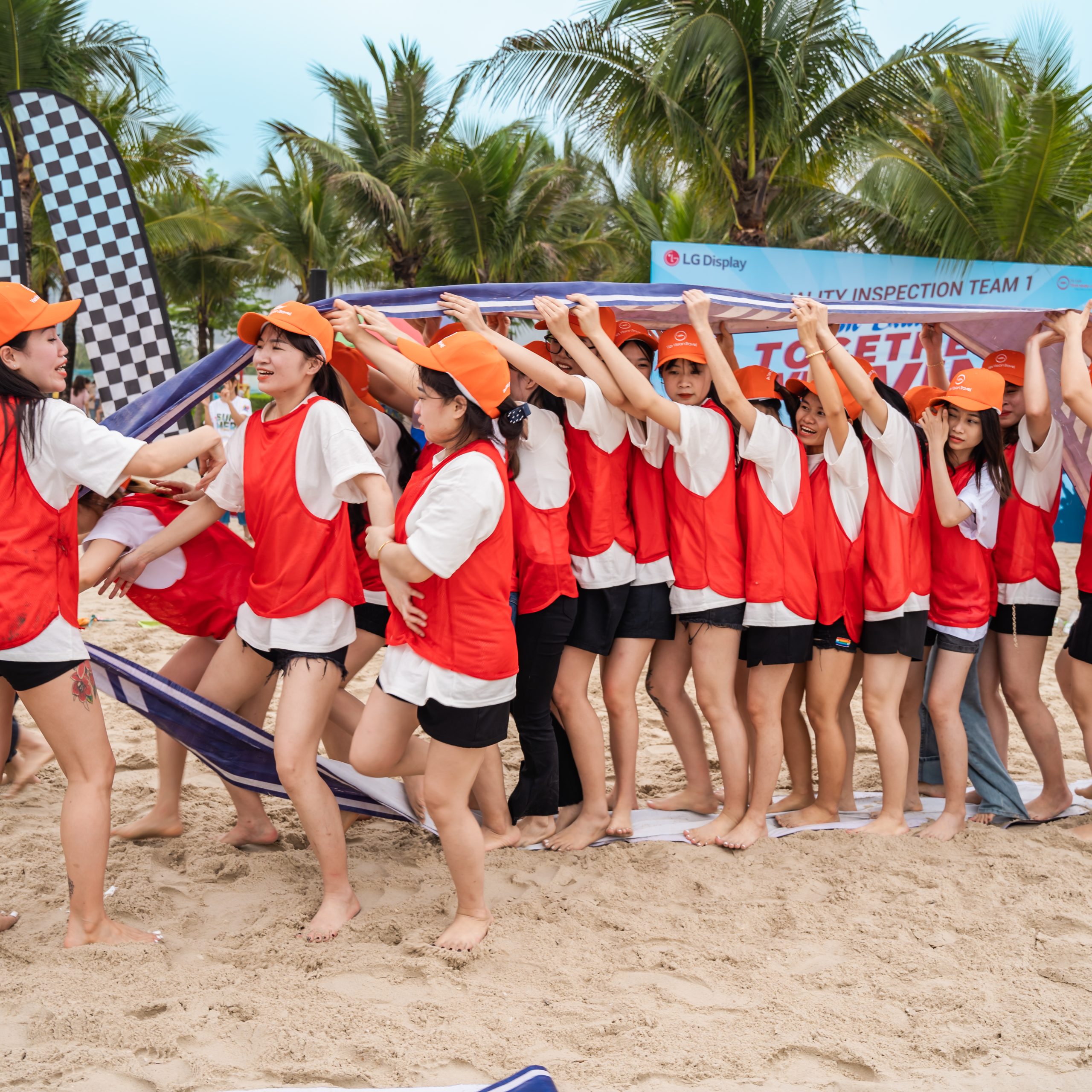 Trong thời gian check - in, các thành viên di chuyển ra khu vực sân team building để tập trung. Mục tiêu của bước này là đảm bảo toàn bộ đội ngũ đã sẵn sàng ổn định vị trí. Media sẽ kết hợp cùng MC để ghi lại những khoảnh khắc đẹp nhất của tất cả các thành viên trước khi bắt đầu vào chương trình Team Building. Khu vực này cũng là nơi các đội đua chuẩn bị tinh thần và trang phục trước khi bước vào phần khởi động.